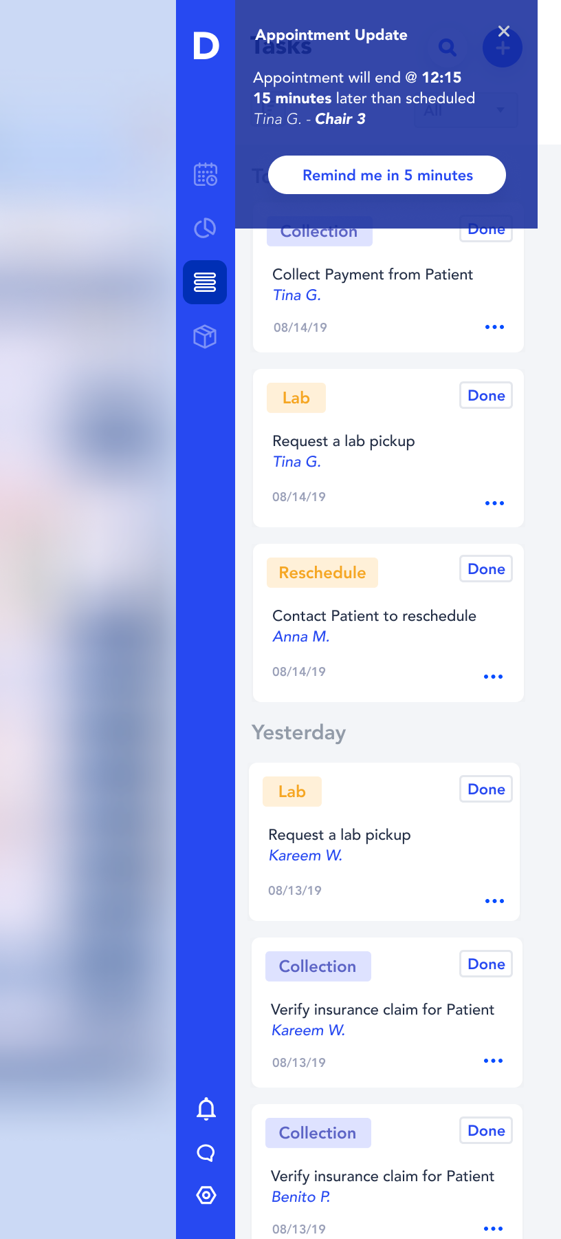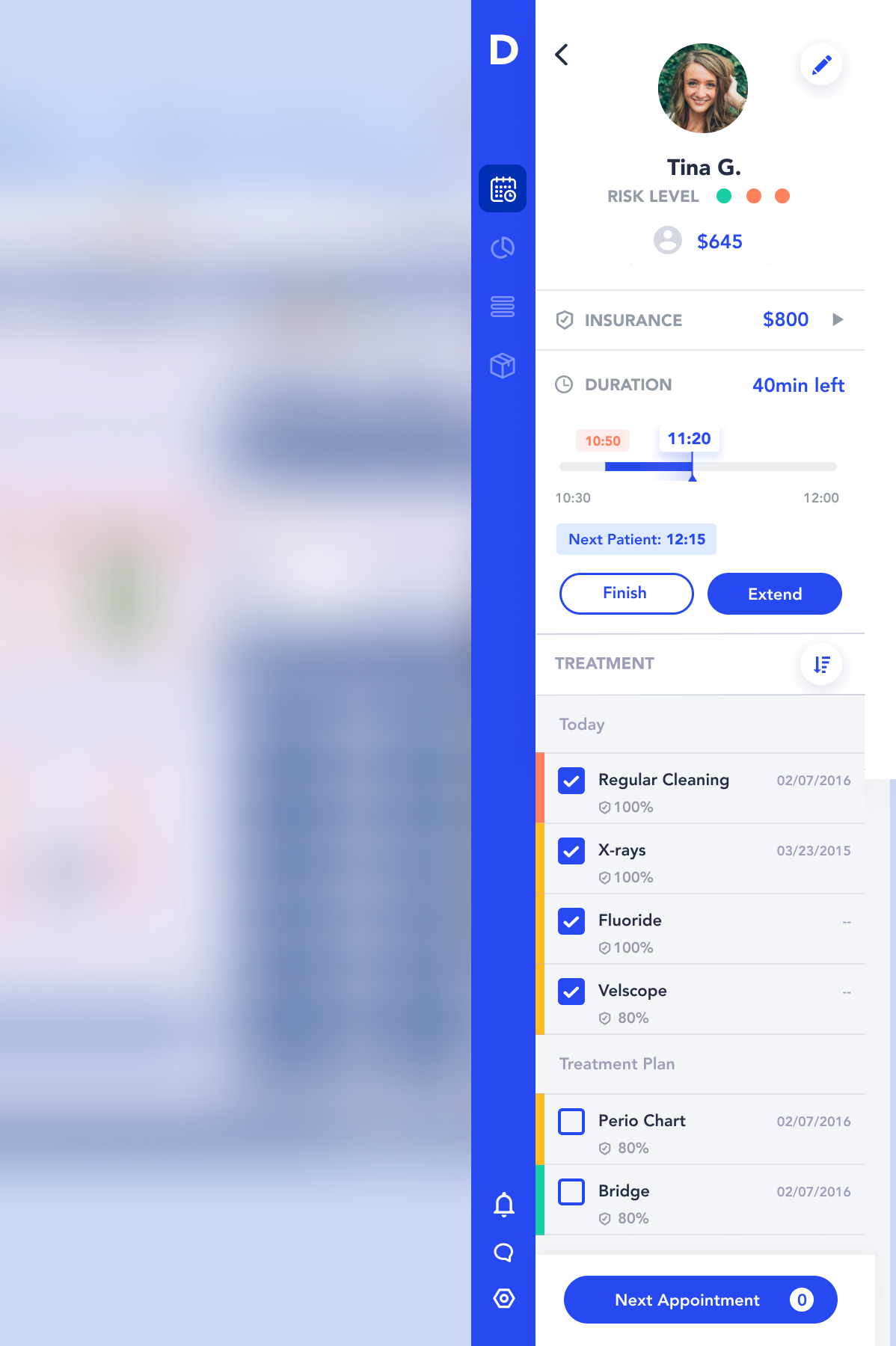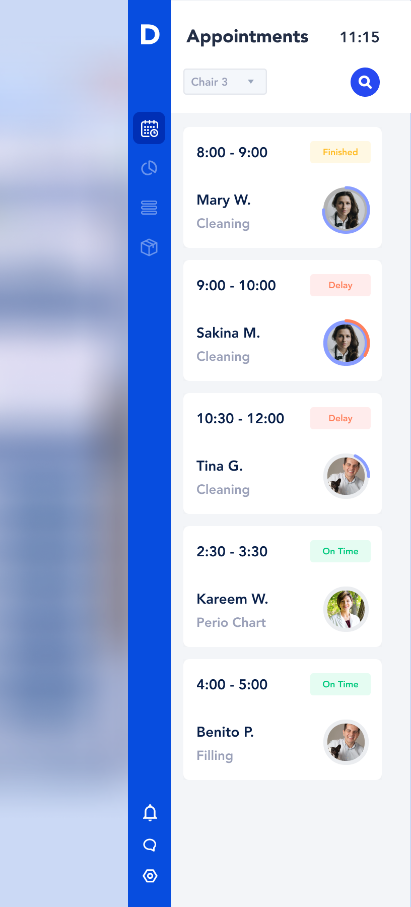 Collapsed view also allowed to view the dentists’ schedule without occupying the whole screen and seeing all the data in a neat column